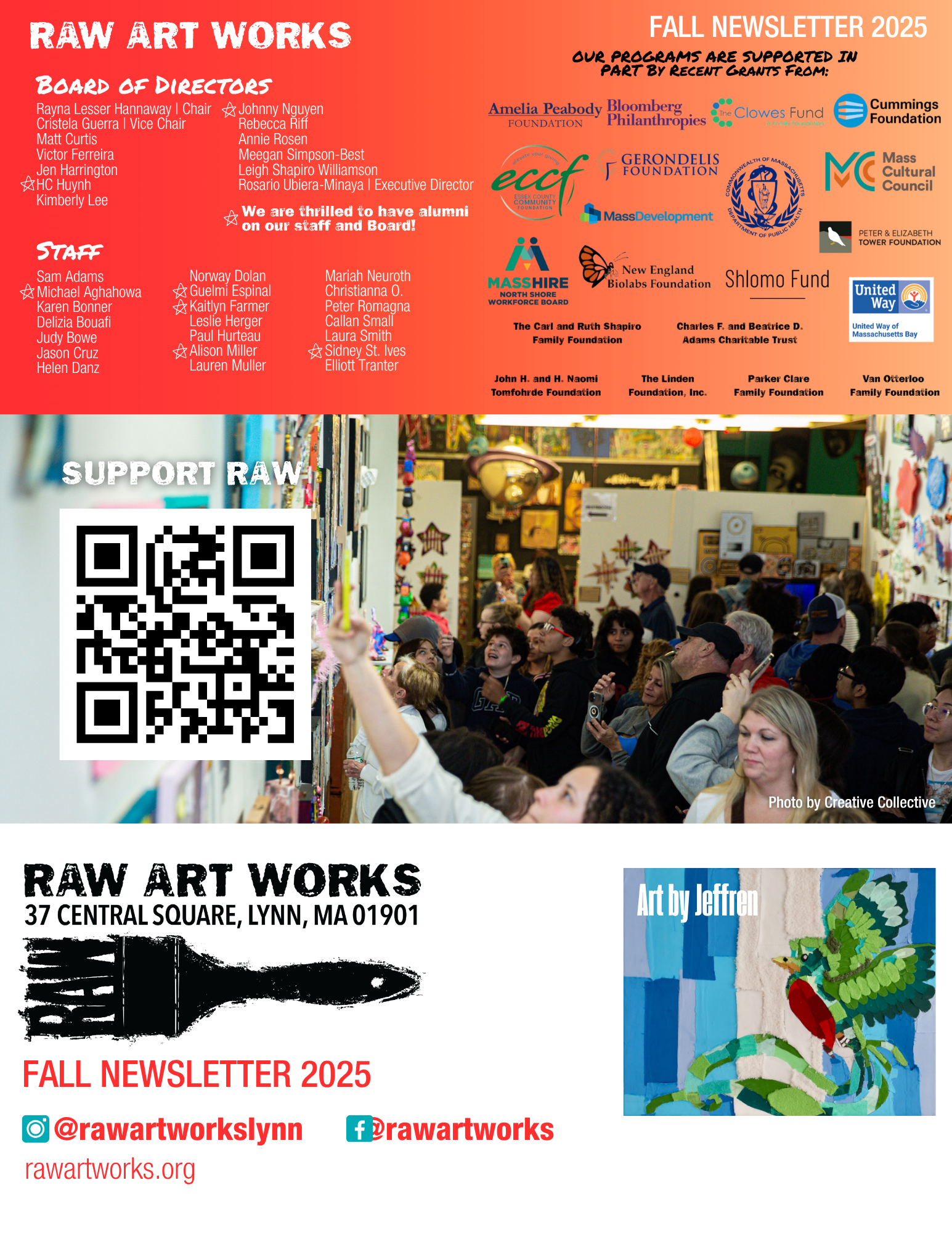 Stay up-to-date with what’s going on at RAW with our Fall 2025 Newsletter.Donate today and learn more about becoming a monthly donor. Funds support free programming for all RAW’s youth. DOWNLOAD THE NEWSLETTER